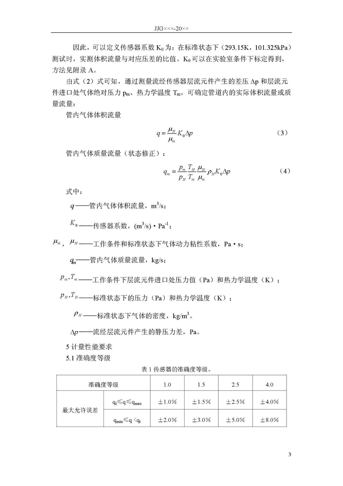 《氣體層流流量傳感器檢定規程》JJG7 36- 20XX