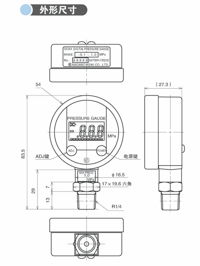 這是一款帶內置電池的數字壓力表,可代替機械表,廣泛運用于氣體和液體的壓力測量