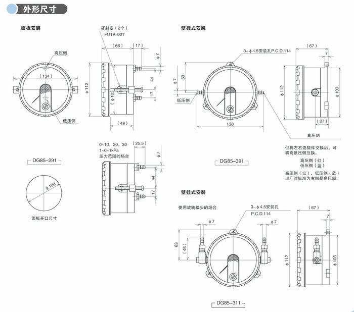 交換左右的連接件,可將高低壓測(cè)互換。