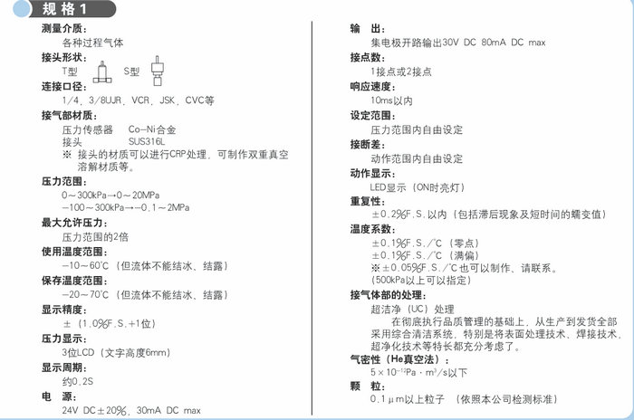 本產品帶有數字設定功能和壓力顯示功能,是具有超潔凈(UC)規格的壓力開關
