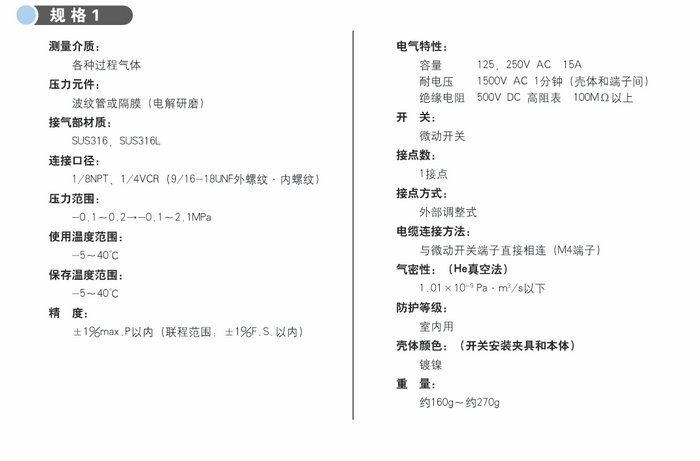這是一種簡單、體積小、重量輕的壓力開關,轉為半導體行業各種氣體應用而設計,在制造此產品時,充分考慮了清潔度和氣密性,并通過嚴格的質量控制和性能測試,因此,該壓力開關適合于測量半導體工業的高純度氣體。