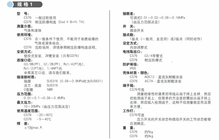 本產品適用于氣壓和液壓的控制及液位和流量的測量。適用于高耐壓,低設定點的場合。