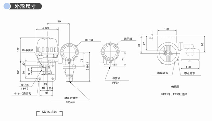 耐壓防爆結構,其壓力感應部采用半導體應變片并提供有內置線圈的防爆箱。