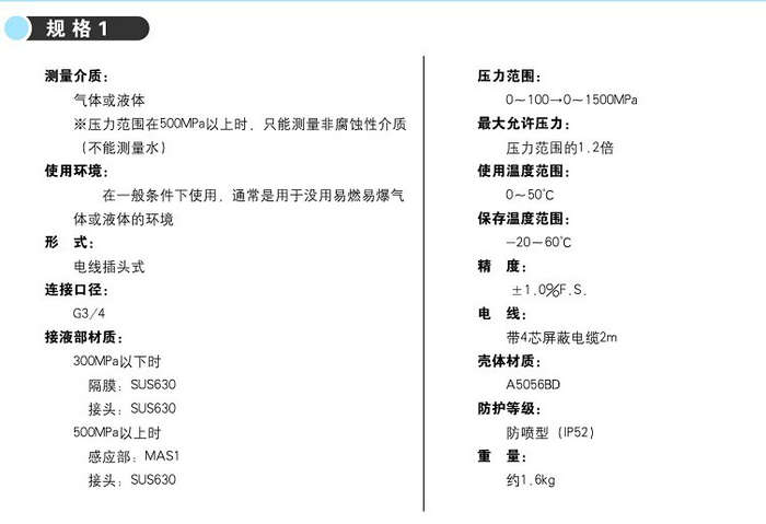 本產(chǎn)品采用高性能金屬應(yīng)變片作為感應(yīng)元件,適合于測量超高壓力,廣泛用于高壓化學(xué)合成、人造水晶制造和高壓油壓機(jī)器等設(shè)備。