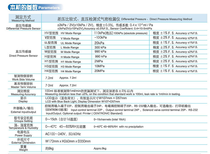 具有中英雙語(yǔ)操作界面的多功能型氣密檢漏儀