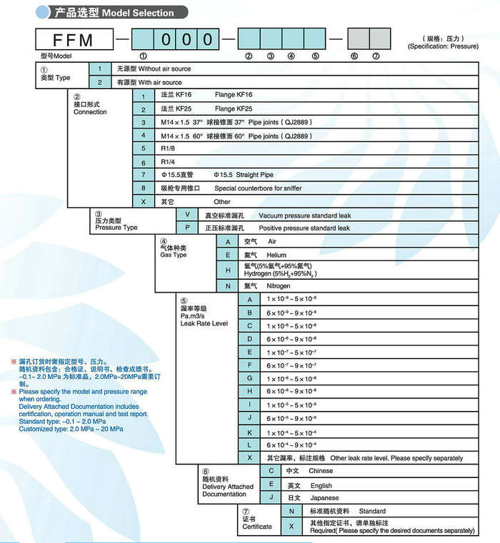 1X10-9~9X10-4Pa·m3/s